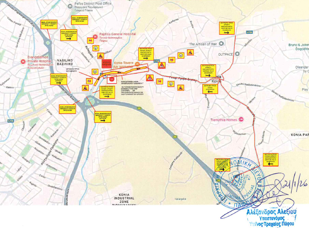 Κυκλοφοριακή Διαχείριση του Έργου Βελτίωσης Τμήματος της Λεωφ. Αρχ. Μακαρίου Γ’ στις περιοχές των Δήμων Πάφου και Ιεροκηπίας (Κονιά)
